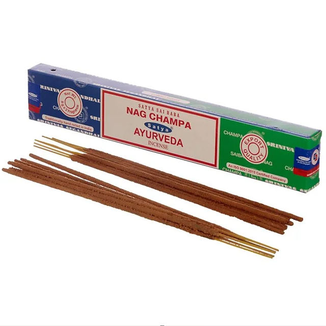 Nombre approximatif de bâtons par paquet: 14 bâtons (7 Nag champa et 7 Ayurveda)