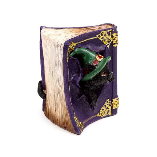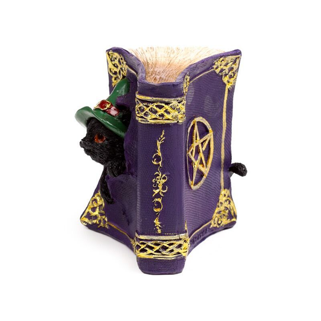 Chat sorcier espiègles dans livre d'invocation mauve