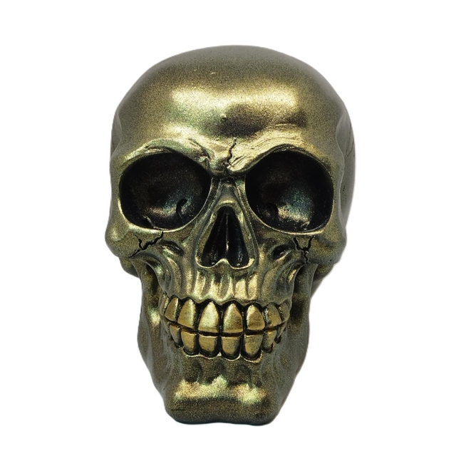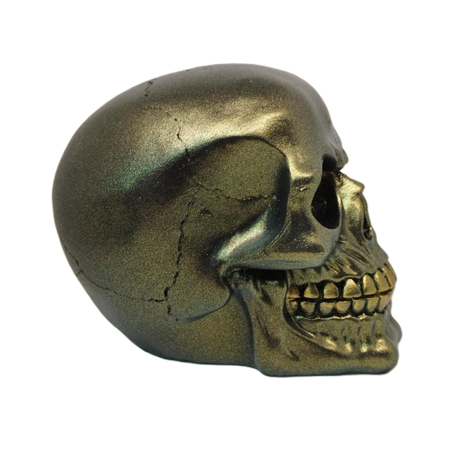 Crâne grand métallique noir doré