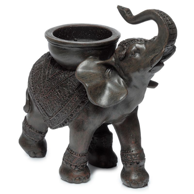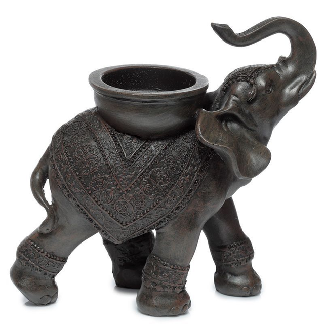 Éléphant effet bois avec porte bougie sur dos