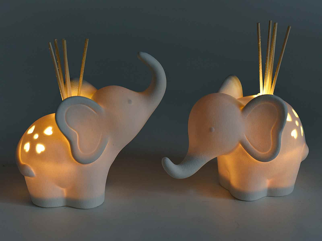 Eléphant trompe en haut porcelaine avec lumière Led