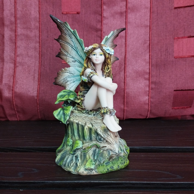 Fée moyenne - Assise sur souche d'arbre