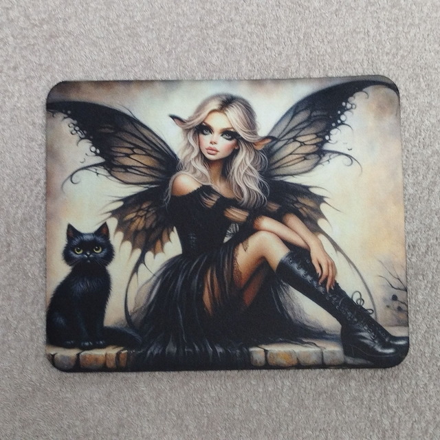 Fée noire et chat à droite