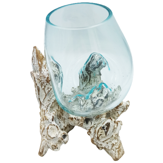 Verre soufflé sur bois blanchi - Grand bol (15)