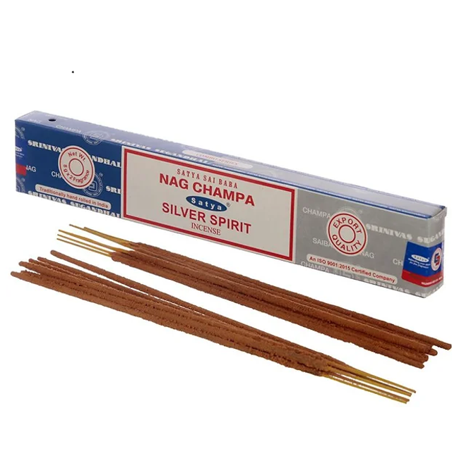 Nombre approximatif de bâtons par paquet: 14 bâtons (7 Nag champa et 7 Esprit Argent)
